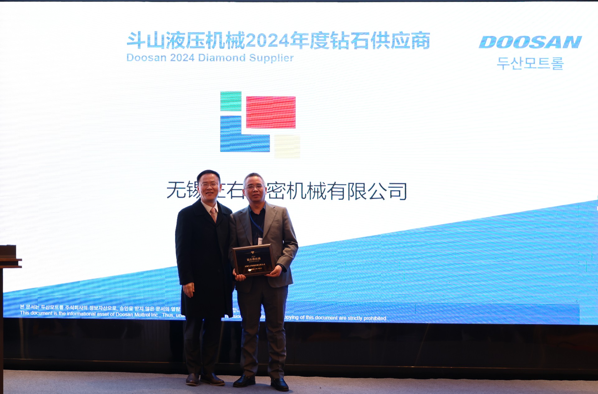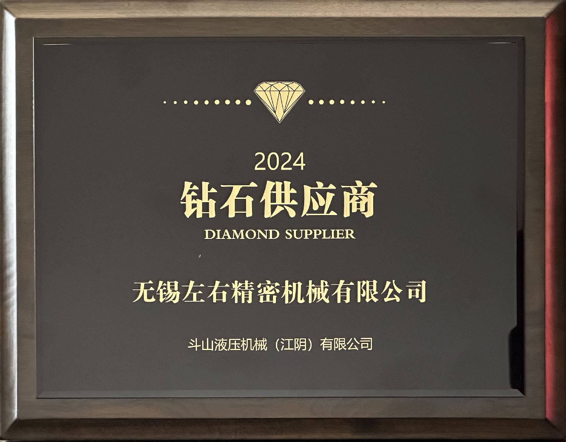 喜報!無錫左右精密機(jī)械有限公司榮獲斗山液壓機(jī)械(江陰)有限公司“2024年度鉆石供應(yīng)商”獎項!